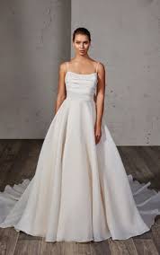 Chrissy is an elegant organza ballgown featuring a structured square neckline and a softly ruched bodice, flowing into a voluminous skirt for a timeless, romantic silhouette.
