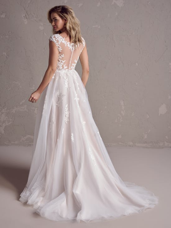 Romantic Short Sleeve Floral Wedding Gown With An Illusion Lace Back And Plunging Neckline